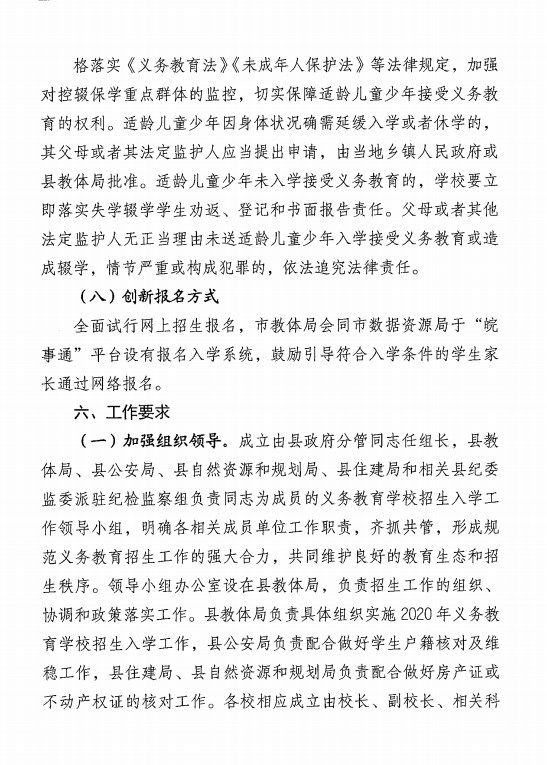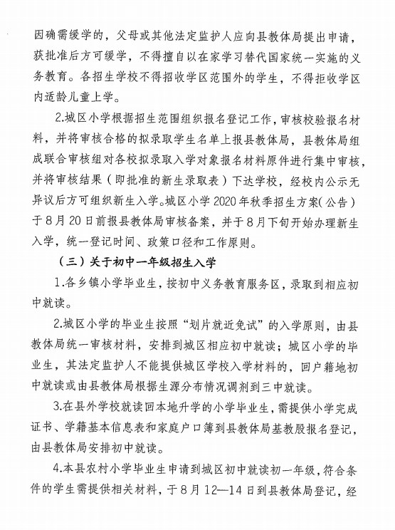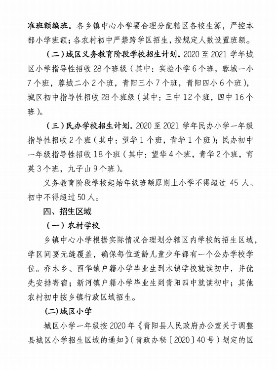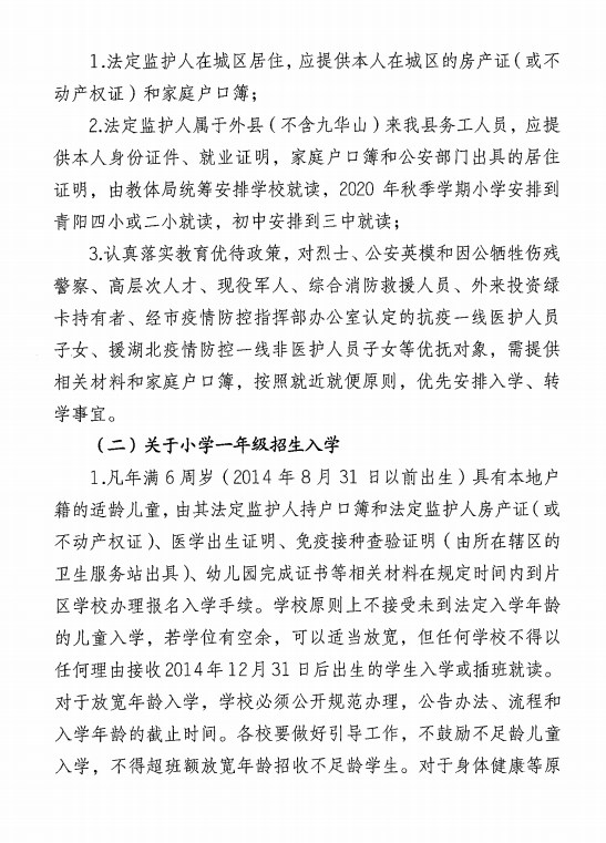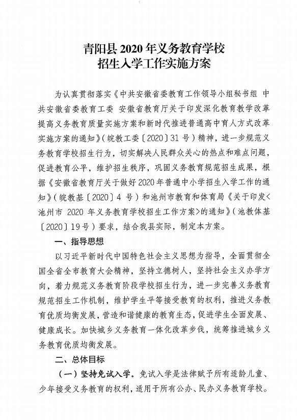 關于印發《青陽縣2020年義務教育學校招生入學工作實施方案》的通知