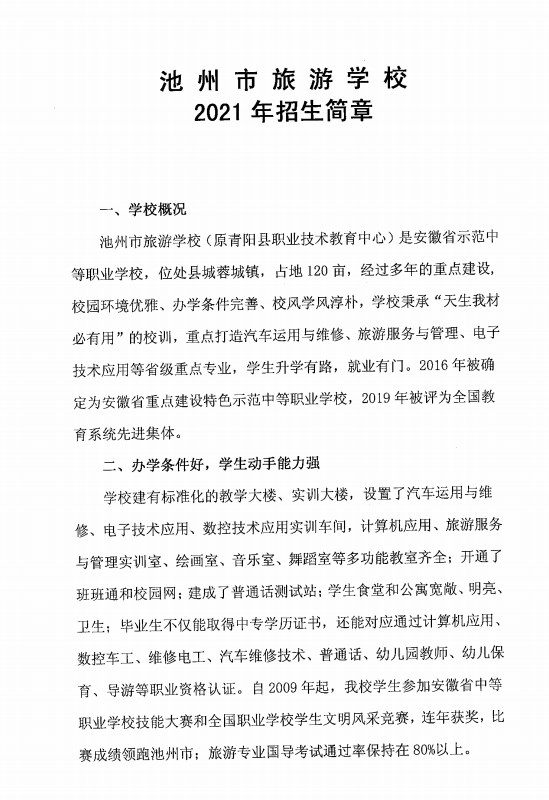 名稱: 池州市旅游學校2021年招生簡章 文號: