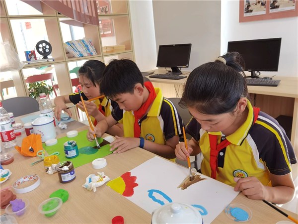 接下來(lái),志愿者組織帶領(lǐng)小朋友們一起畫(huà)趣味畫(huà)。大家用顏料、水彩筆、卡紙、粘土創(chuàng)作,不一會(huì)兒,充滿(mǎn)童趣的趣味畫(huà)躍然紙上。