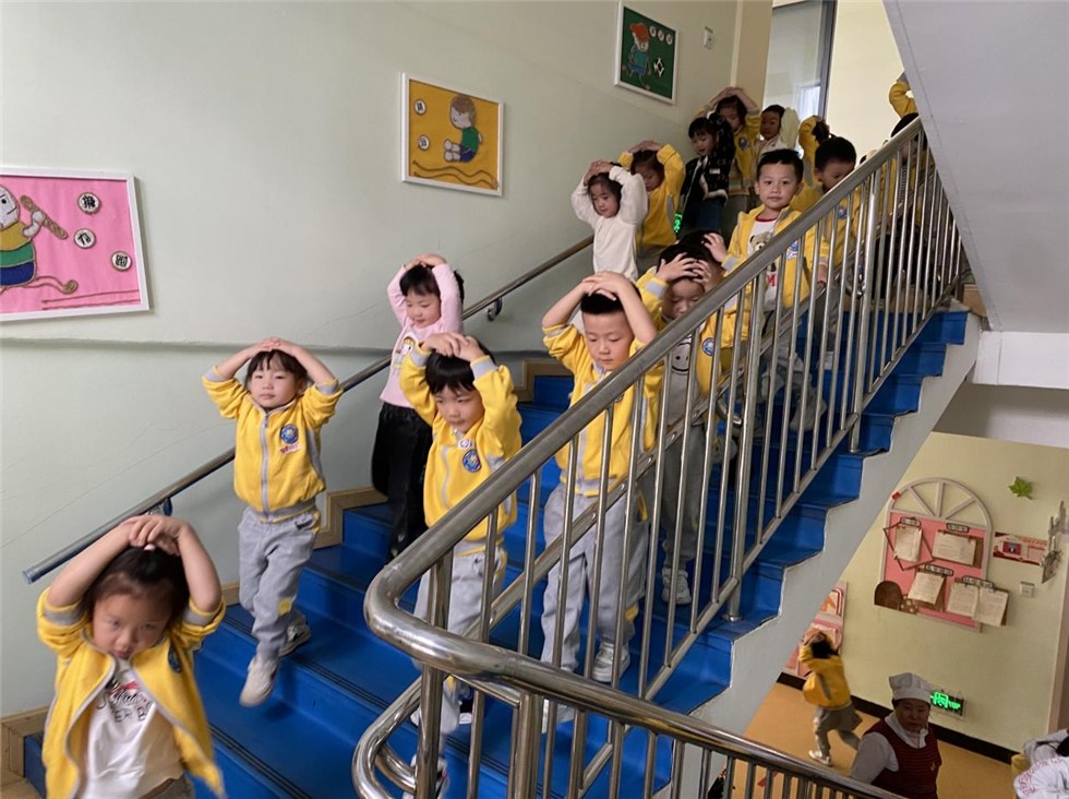 活動中,警鈴響起,孩子們在老師的組織下,護住頭部,彎腰低身,按照逃生路線有序逃生。疏散至操場安全地帶后。教師迅速清點人數,整個疏散過程中僅用了3分鐘,無任何意外發生,真正的做到了快速、安全、有序。