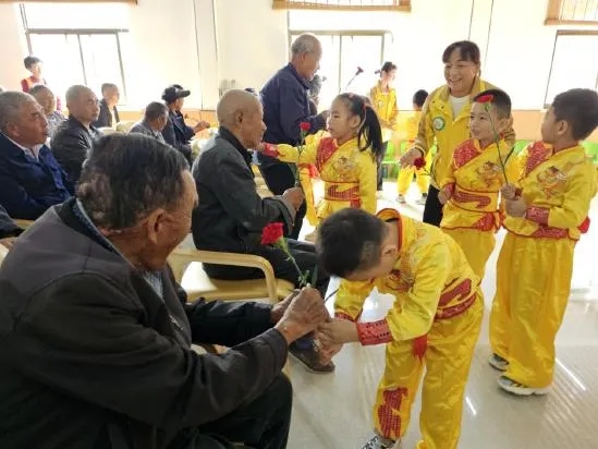 活動(dòng)中,孩子們將鮮花和點(diǎn)心,一一送到老人手中,與老人溫馨互動(dòng),表達(dá)了對(duì)長輩滿滿的愛與感恩,老人們用質(zhì)樸的語言祝福孩子們未來前程似錦。