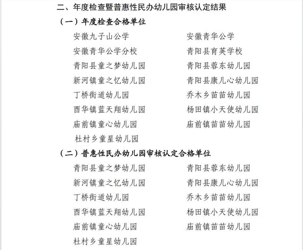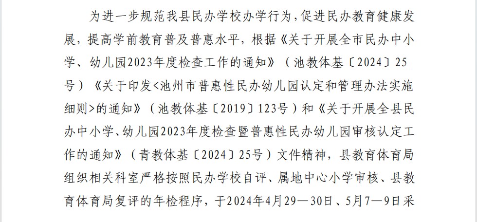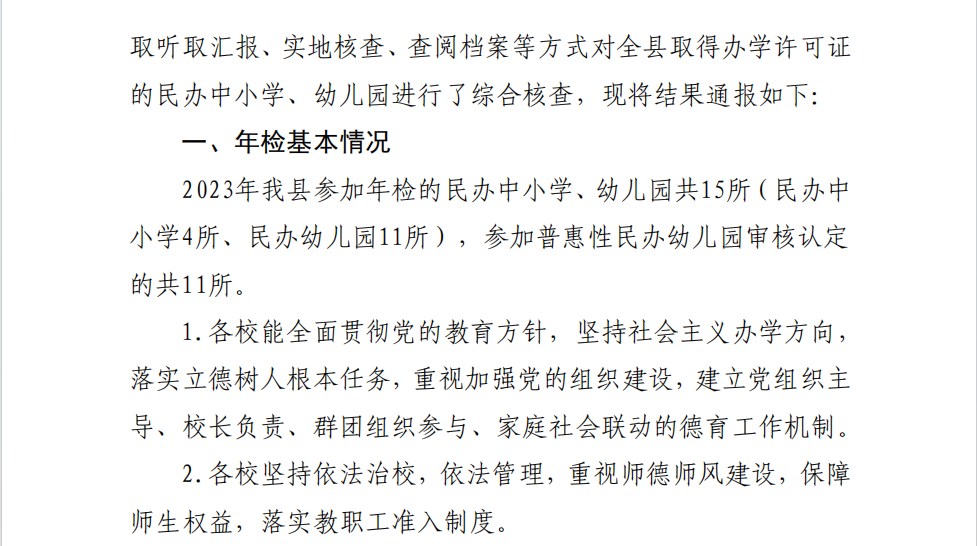 全縣民辦中小學、幼兒園2023年度檢查暨普惠性民辦幼兒園審核認定結果