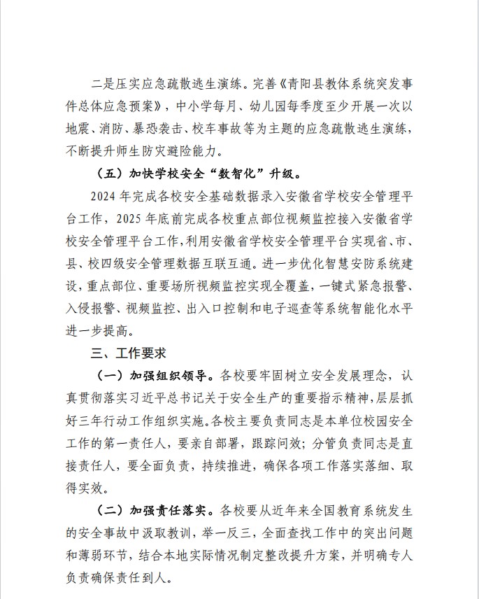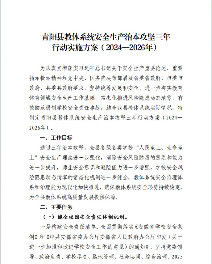 青陽縣教體系統安全生產治本攻堅三年行動實施方案(2024—2026年)