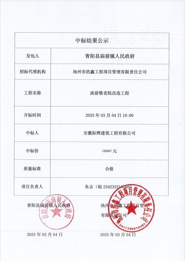 名稱: 廟前敬老院改造工程中標公示 文號: