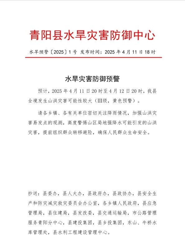 來源:青陽縣水旱災害防御中心 發布時間:2025-04-12 16:19