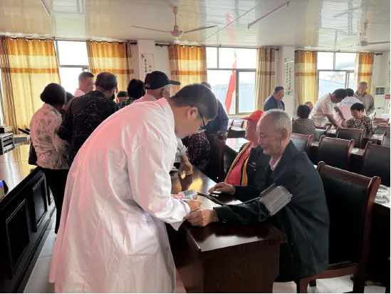 講座結束后,袁教授及醫護人員為現場老年人提供免費血壓測量服務。老人們有序排隊,醫護人員一邊仔細測量,一邊耐心記錄數據;針對血壓偏高的老人,還詳細詢問其日常用藥和飲食情況,逐一叮囑注意事項,讓老人們倍感溫暖。