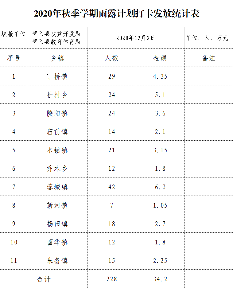 現將擬發放的2020年秋季學期雨露計劃補助資金34.2萬元(分鄉鎮統計表附后)予以公告。