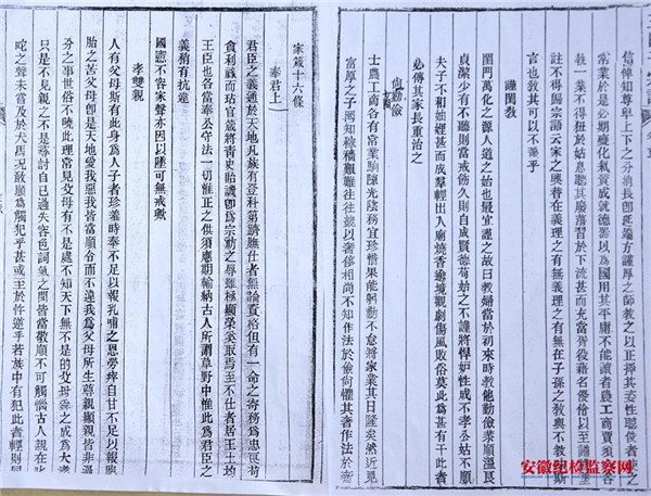 青陽楊田《王氏家箴》共有十六條,奉君上、孝雙親、尚勤儉、睦兄弟、擇交游、端教誨、積公儲、息爭訟……。《王氏家箴》蘊含了“忠、孝、謙、勤”等豐富的中國優(yōu)秀傳統(tǒng)文化思想,不僅從倫理道德上對后人諄諄教誨,而且對于如何為人處世也做了具體規(guī)范,至今潤澤子孫。