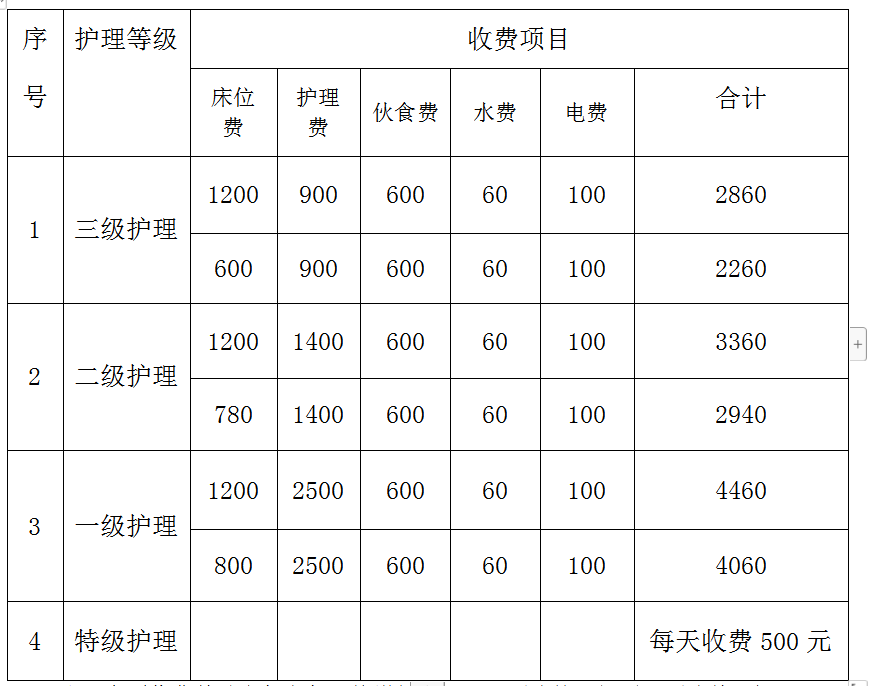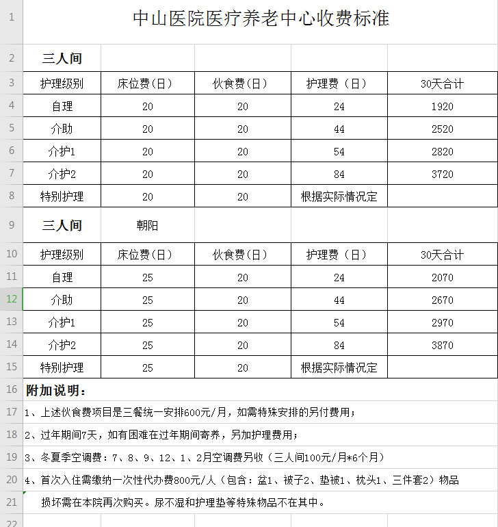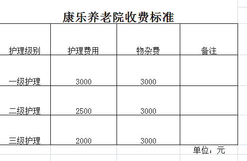養(yǎng)老服務(wù)收費(fèi)標(biāo)準(zhǔn)(中山、城西、康樂)