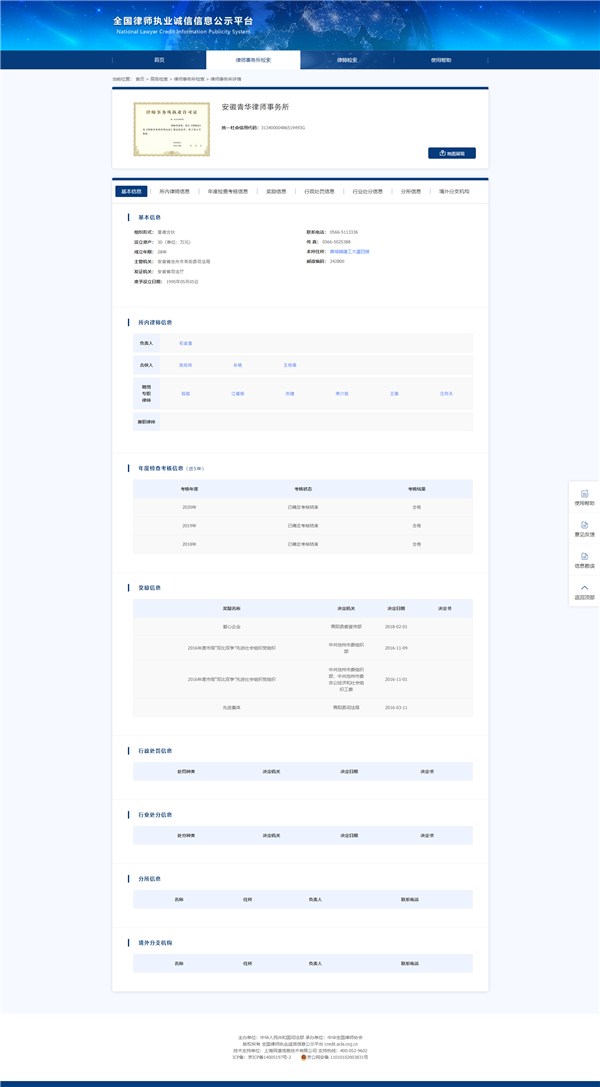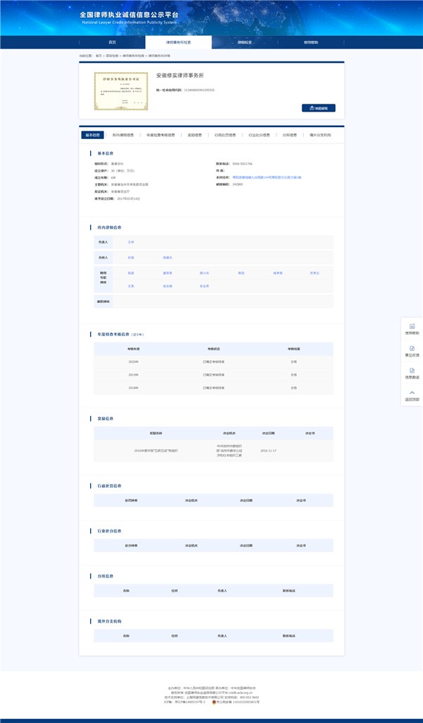 2023年安徽省律師事務所誠信檔案