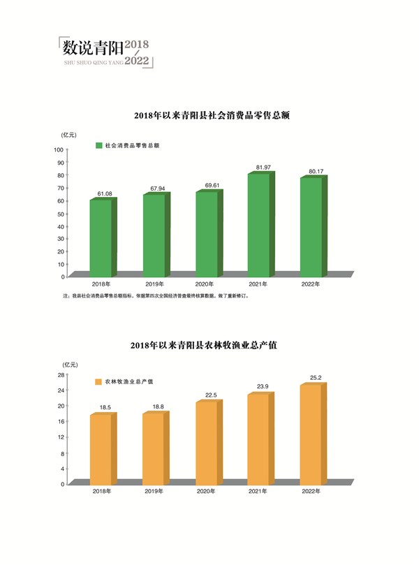 2018年以來青陽縣社會消費品零售總額、農林牧漁業總產值