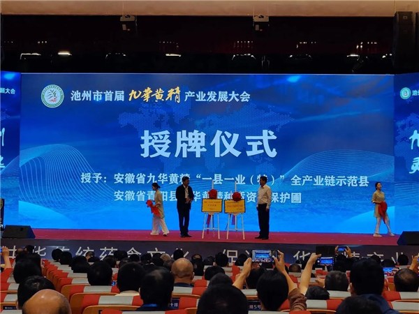 產(chǎn)業(yè)發(fā)展大會還舉行了簽約和授牌儀式,華潤三九中醫(yī)藥產(chǎn)業(yè)發(fā)展和服務(wù)能力提升全面戰(zhàn)略合作項目、農(nóng)發(fā)行政策性金融支持九華黃精產(chǎn)業(yè)發(fā)展全面戰(zhàn)略合作協(xié)議、九華黃精研發(fā)及黃精文旅項目、九華黃精科技產(chǎn)業(yè)園項目、九華黃精有效成分提取項目5個項目進行了現(xiàn)場簽約。省農(nóng)業(yè)農(nóng)村廳分別為青陽縣及青陽縣九華黃精種質(zhì)資源保護圃授予“安徽省九華黃精‘一縣一業(yè)(特)’全產(chǎn)業(yè)鏈?zhǔn)痉犊h”和“省級農(nóng)業(yè)種質(zhì)資源保護單位”牌匾。