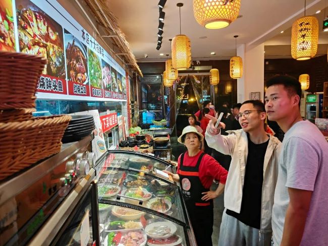 嗦螺螄、吃龍蝦、嘗小刀面、品各種鹵味……青陽縣十字街這家開了27年的瞎哥夜宵店大抵可以“一站式”滿足你的味蕾。