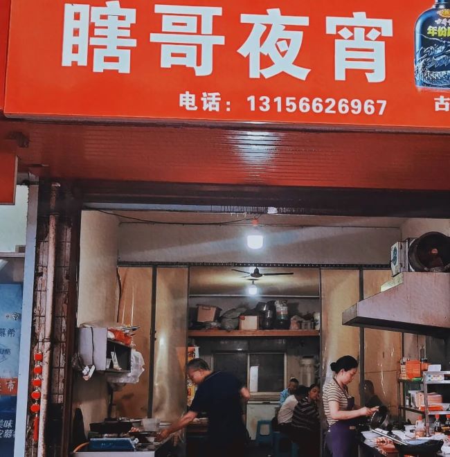 瞎哥名叫王鶴松,自1997年起,便在青陽的一家網吧對面擺起了地攤小吃。因為戴眼鏡,不少老顧客開玩笑地喊他為“瞎哥”。2010年,他收起攤位在十字街一條巷子里開起了店。因為懷念那段擺攤歲月,也為了讓老顧客更快找到自己的店,他干脆就把店名取為“瞎哥夜宵”。開業后,靠著擺地攤積累下的口碑,即使店在深巷,顧客依然絡繹不絕。