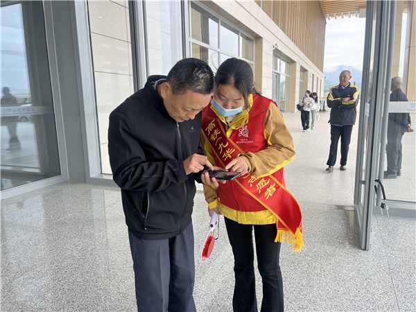 志愿者分別在出入站口引導乘客有序進出,耐心解答乘客咨詢,同時維護接送車輛停車秩序,引導機動車前往停車場停車,避免交通擁堵。志愿者們熱情專業,為一波又一波抵達的旅客展示了青春風采。