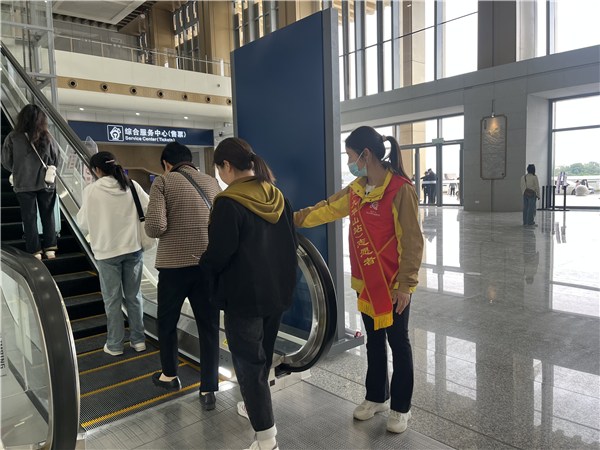 九華山站正式迎來了它的首次五一假期。假期間,有這樣一群可愛的青年人,放棄周末和節假日的閑暇,在他人踏上旅途時,逆著人流,熱情耐心為旅客提供幫助,為九華山站分擔壓力。