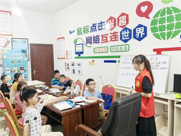 深度拓展延伸,讓陣地為群眾用起來活起來。堅持“群眾在哪里,文明實踐就延伸到哪里”,青陽縣多數村(社區)新時代文明實踐站積極發揮聯系群眾、服務群眾前沿哨所作用,依托文明實踐陣地,整合各類資源,針對暑期學生、留守兒童、困難家庭等群體,積極開展春風童行、公益課堂、助學育人等文明實踐活動。蓉城鎮長龍社區新時代文明實踐站開展“春風童行”暑期托管活動,為轄區內50余名孩子精心準備了安全科普、美術工坊、經典文學、非遺折扇、音樂舞蹈等“五花八門”的課程,讓孩子們在玩樂中學習,在學習中成長。“有沒有同學知道我們應該如何預防溺水呢?”“我知道,我知道,不準私自下河游泳,不準擅自與他人結伴游泳”……杜村鄉垅上村招募暑假返鄉的大學生志愿者在新時代文明實踐站的科普宣傳活動室為村里的10余名兒童自辦為期20天的公益小課堂,為孩子們講解暑期作業、歷史人文典故、練寫軟筆書法、科普知識等,在帶領孩子們沉浸知識的海洋中的同時,也讓農村孩子“暑”有所托。
