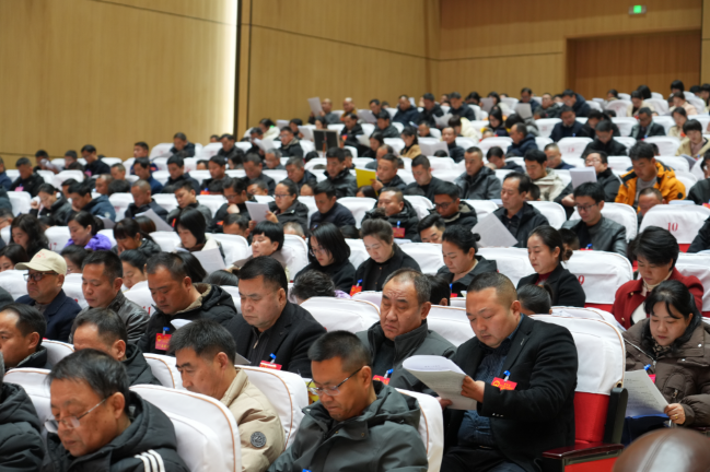 在熱烈的掌聲中,縣人民政府縣長方操勝代表縣人民政府向大會作《政府工作報告》。報告共分三個部分:一、2024年工作回顧;二、2025年工作安排;三、全面加強政府自身建設。