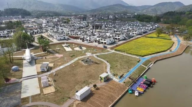 驅車從青陽縣城出發,沿著蜿蜒道路行駛約1個小時后,便抵達位于禮貌山下的陵陽鎮沙梗村。遠近聞名的飛機公園、金黃燦爛的油菜花海、白墻黛瓦的徽派村居。誰能想到,曾經藏在深山人未知的古村落,整體搬遷后成為游客們心向往之的鄉村游目的地。