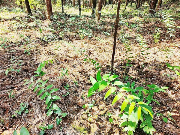 青陽縣鄉投集團與酉華林場聯合打造的九華黃精林下種植基地里,綠油油的九華黃精種苗長勢喜人。