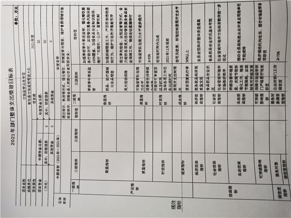 青陽縣市場監管稽查大隊 2021 年按照規定設置績效目標的項目為市場監管業務專項, 項目期自2021年1月1日至2021年12月31日,總投入金額50萬元。總目標是通過培訓、執法等方式,強化餐飲、藥械監管與稽查,維護食藥領域市場經營秩序,保障全縣人民群眾飲食用藥安全。項目實行單位自評。