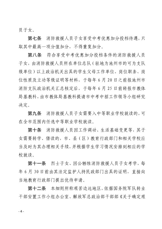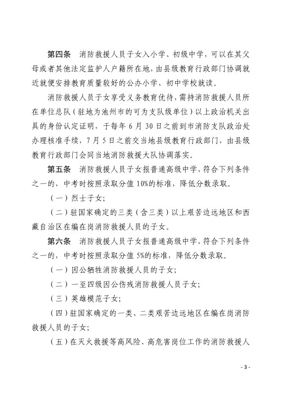 關于印發《池州市國家綜合性消防救援人員子女優待實施細則(試行)》的通知