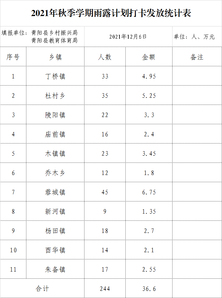 現將擬發放的2021年秋季學期雨露計劃補助資金36.6萬元(分鄉鎮統計表附后)予以公告。