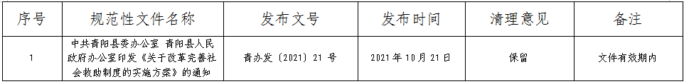 2021年青陽縣民政局第四季度規范性文件清理情況