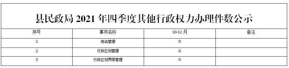 名稱: 縣民政局2021年四季度其他行政權力辦理件數公示 文號: