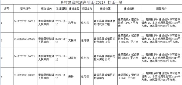 2021年第四季度鄉(xiāng)村建設規(guī)劃許可證