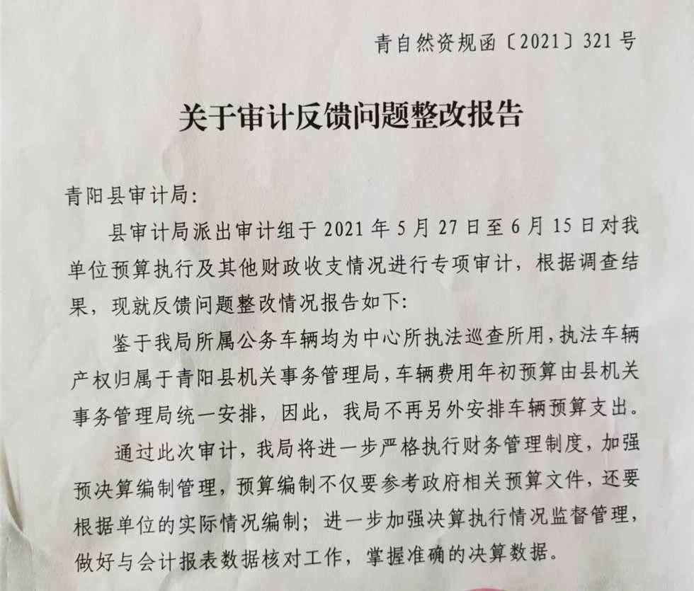 您現(xiàn)在所在的位置: 網(wǎng)站首頁 > 政府信息公開 > 青陽縣審計(jì)局 > 審計(jì)重點(diǎn)領(lǐng)域 > 審計(jì)公開 > 審計(jì)整改情況