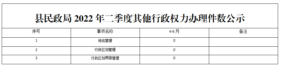 名稱: 縣民政局2022年二季度其他行政權力辦理件數公示 文號: