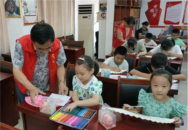 活動中,省非物質(zhì)文化遺傳繼承人、黨員志愿者江太平詳細講解了大九華水墨玉娟扇的歷史、制作以及技藝,并讓孩子們親身體驗,感受“非遺”魅力,體驗實踐樂趣,激發(fā)孩子們學(xué)習(xí)傳統(tǒng)文化的興趣。省作家協(xié)會會員、黨員志愿者蘇華民引導(dǎo)孩子們充分發(fā)揮自己的想象力,精心繪制折扇,通過水彩繪畫、創(chuàng)意畫等方式來表達內(nèi)心的世界,經(jīng)過兩個小時的繪制,完成了一幅幅生動的圖畫。