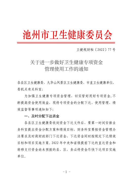 池州市衛(wèi)生健康委關(guān)于進(jìn)一步做好衛(wèi)生健康專(zhuān)項(xiàng)資金管理使用工作的通知