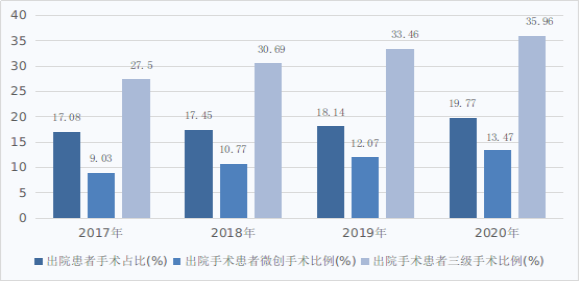 圖2?2017-2020年二級公立醫院出院患者手術開展情況