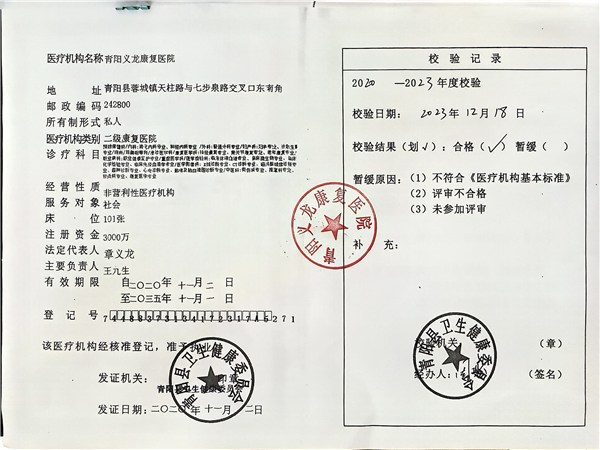 一、機(jī)構(gòu)名稱 青陽(yáng)義龍康復(fù)醫(yī)院