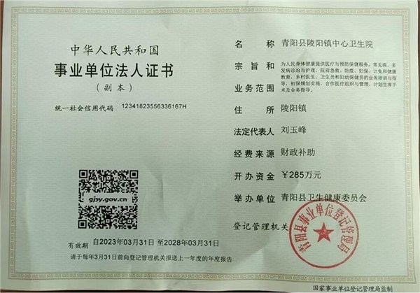 一、機構名稱:青陽縣陵陽鎮中心衛生院