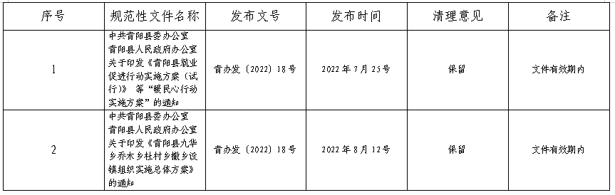 名稱: 2022年青陽縣民政局第三季度規范性文件清理情況 文號: