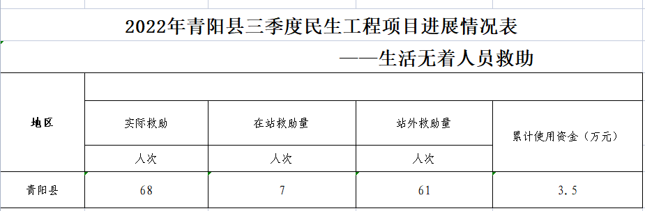 名稱: 青陽縣2022年第三季度生活無著人員社會救助情況公示 文號: