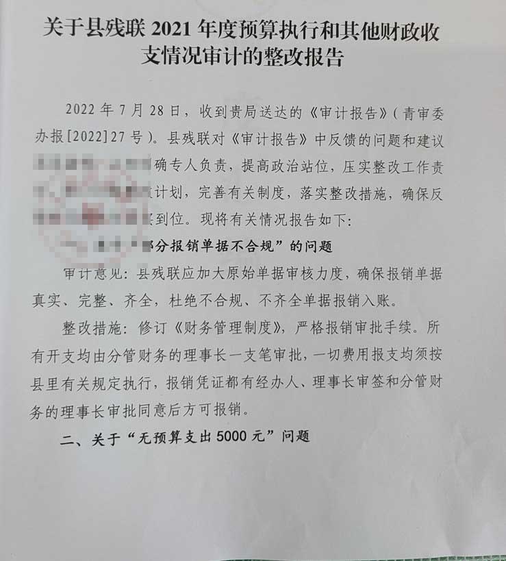 縣殘聯2021年度預算執行和其他財政收支情況審計整改情況