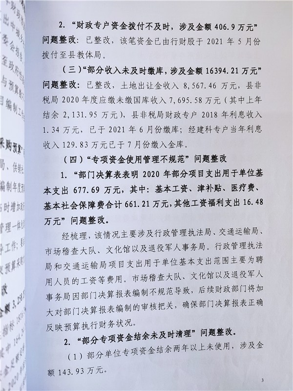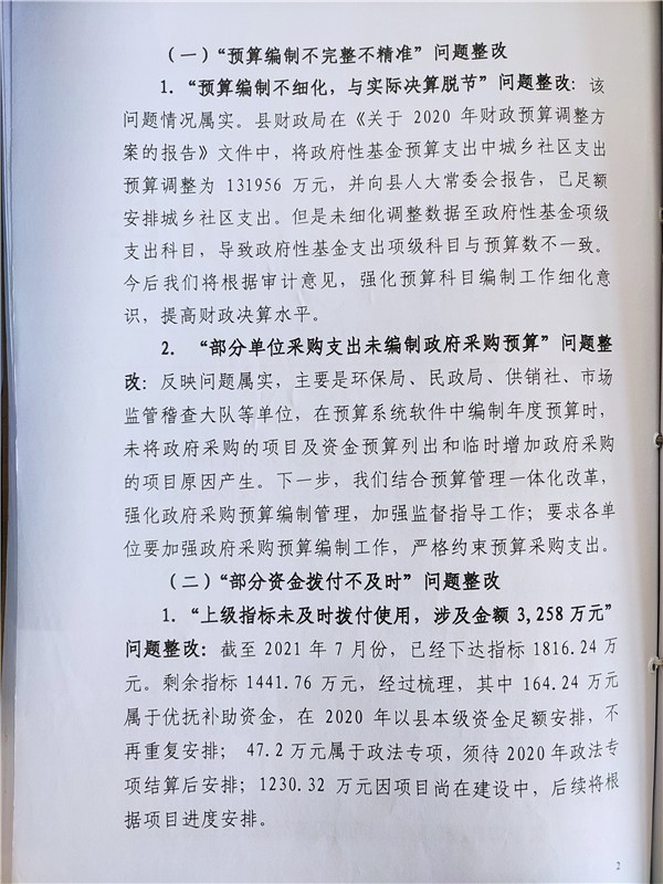 2020年度本級(jí)預(yù)算執(zhí)行和其他財(cái)政收支審計(jì)中發(fā)現(xiàn)問(wèn)題整改情況的報(bào)告