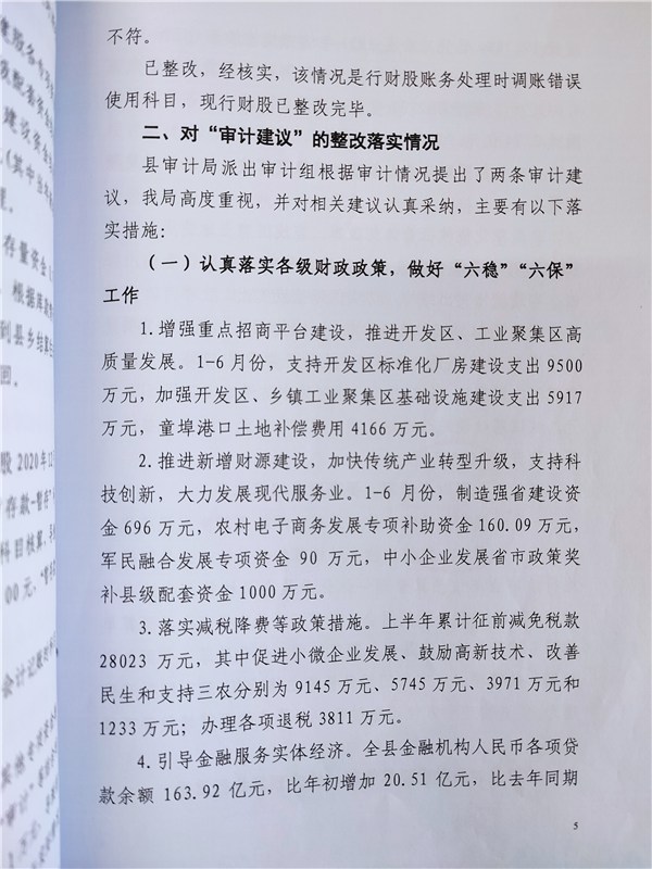 名稱: 2020年度本級(jí)預(yù)算執(zhí)行和其他財(cái)政收支審計(jì)中發(fā)現(xiàn)問(wèn)題整改情況的報(bào)告 文號(hào):