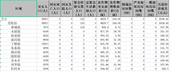 名稱: 2022年青陽縣全年災情核定情況 文號: