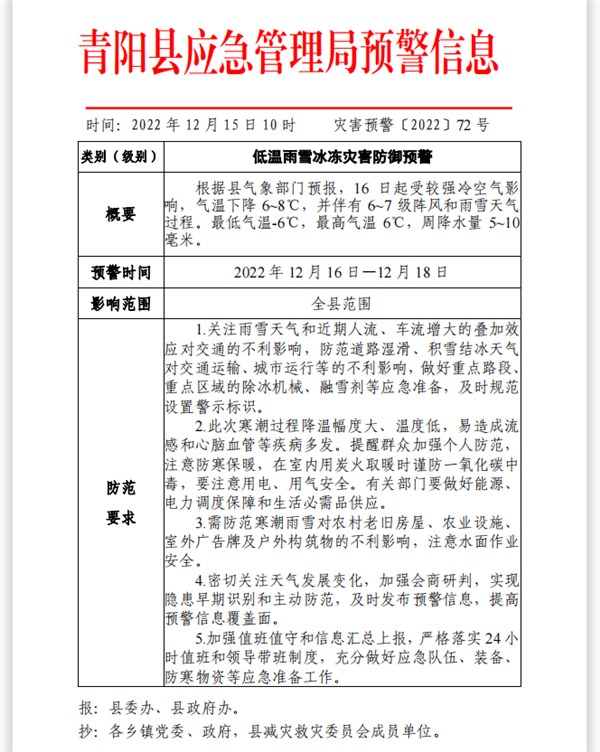 名稱: 【預警信息】低溫雨雪冰凍災害防御預警 文號: