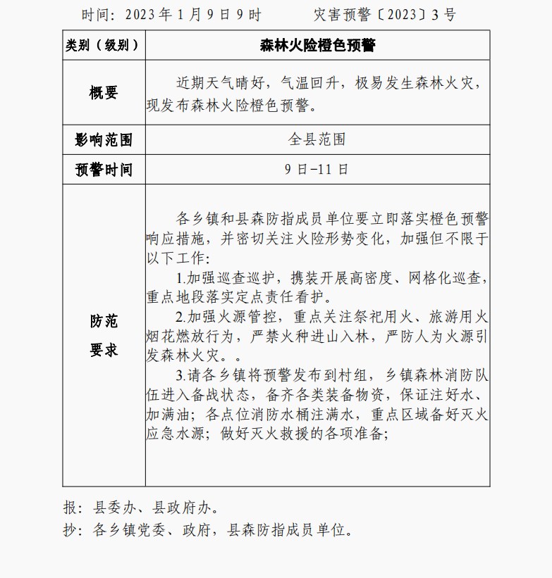 名稱: 森林火險橙色預(yù)警3號 文號: 青災(zāi)害預(yù)警〔2023〕3號