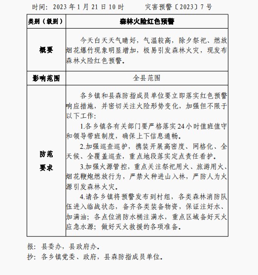 名稱: 森林火險紅色預(yù)警 7號 文號: