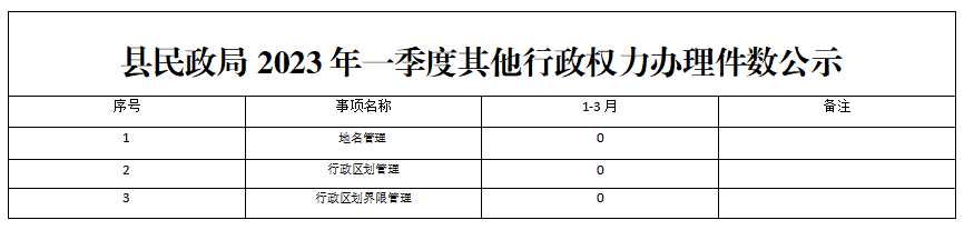 縣民政局2023年一季度其他行政權(quán)力辦理件數(shù)公示