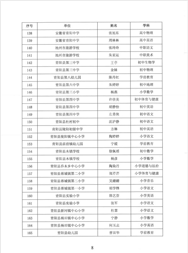 青陽縣33名教師獲評“池州市第四屆教壇新星”