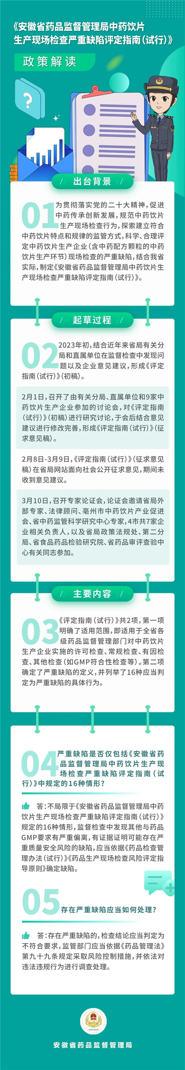【圖片解讀】《安徽省藥品監(jiān)督管理局中藥飲片生產(chǎn)現(xiàn)場(chǎng)檢查嚴(yán)重缺陷評(píng)定指南(試行)》