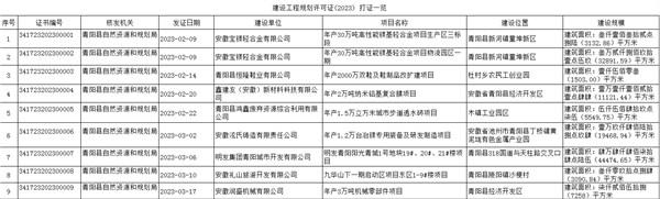 青陽縣自然資源和規劃局2023年第一季度建設工程規劃許可證核發一覽